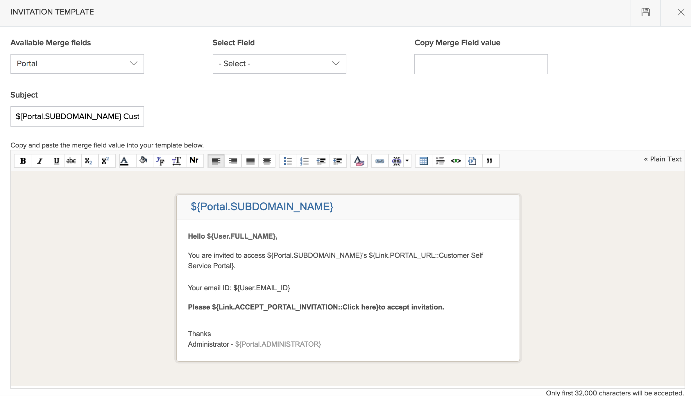 The Invitation Template dialog will appear. Make the necessary changes to the invitation template. Then click
