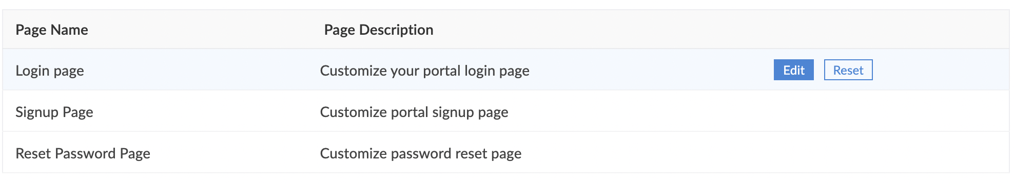 - The Reset button that appears when you hover beside a portal page resets the changes you have made in the designer.