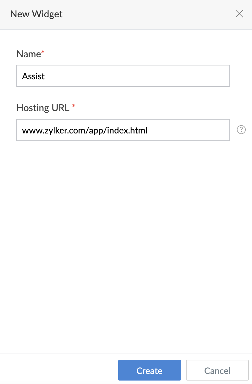 - Enter the Index page URL of the externally hosted widget in the Hosting URL field.