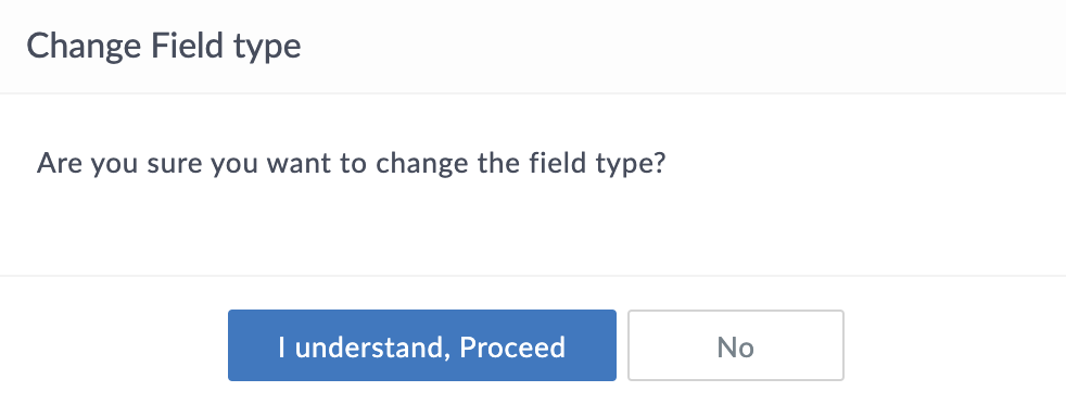 Upon selecting a different field type, ManageEngine AppCreator will prompt: