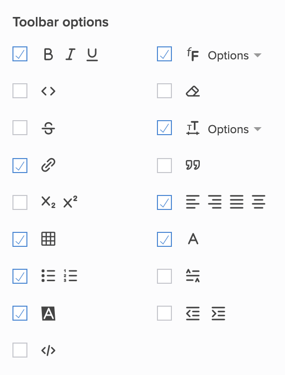 - Navigate to the Field Properties > Toolbar options section on the right.
