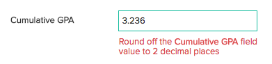 For example: When you set the Decimal Points property of a decimal field to 2, the below given is what happens when a user enters a decimal value that has more than 2 digits after the decimal point, and submits your form from a web browser: