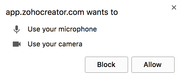 - If it is the first time your user is accessing the video field, they will be prompted to grant permission to use the computer's microphone and camera.