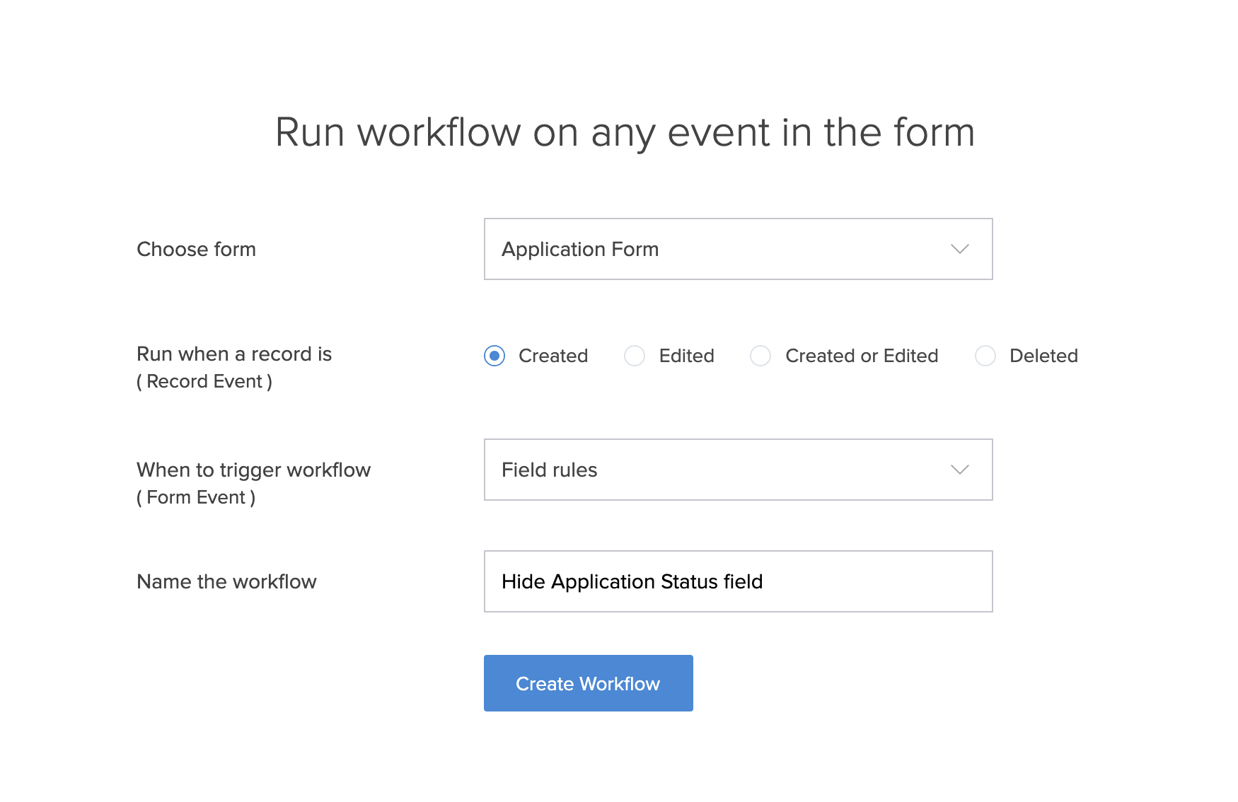 - Set the workflow's name as 'Post interview update', then click Create Workflow: