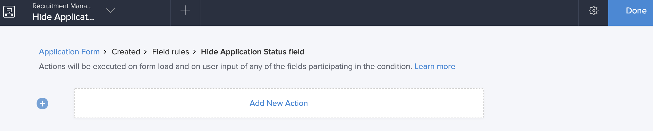 You will be taken to the Workflow page of your app. When you access the Application Form hereafter, the Application Status field will not appear.