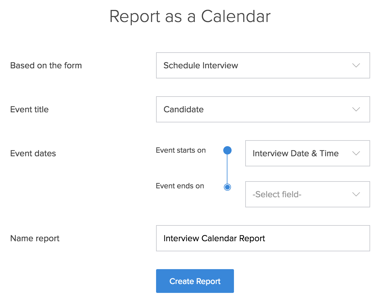- Set the report's name as 'Interview Calendar Report', then click Create Report.