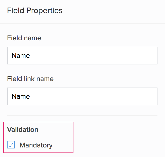 - Field link name: Its the name with which a field is internally referred by ManageEngine AppCreator