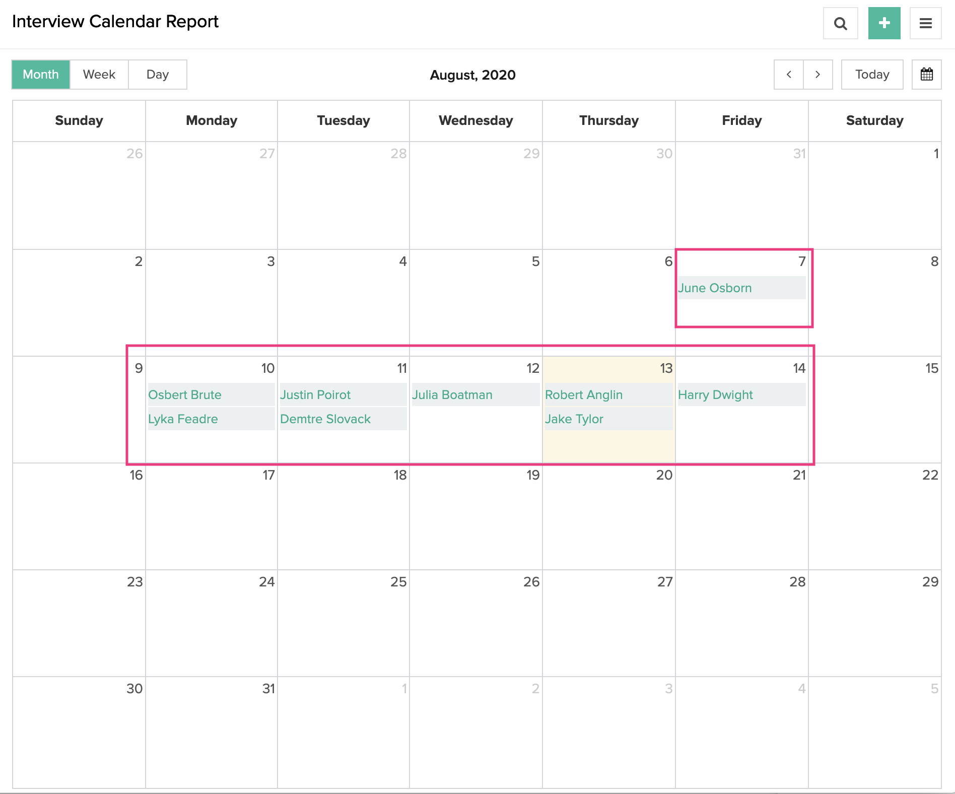 - The manager accesses the Interview Calendar Report. The manager schedules an interview by clicking on the required date in this report.