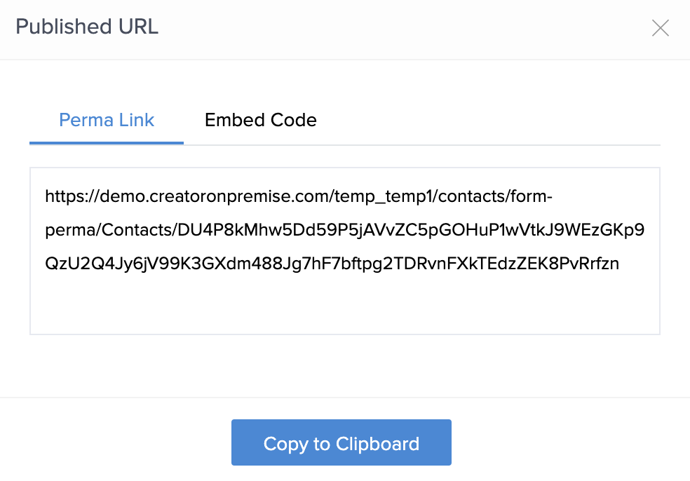 - Copy the Perma Link that appears in the Published URL pop-up window.