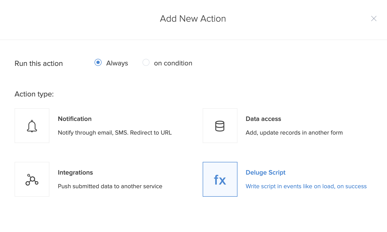 As the candidates will be sharing their email addresses while submitting the Application Form, we can notify them by sending an email when they submit this form. You can achieve this by using one of the built-in features of forms in ManageEngine AppCreator.