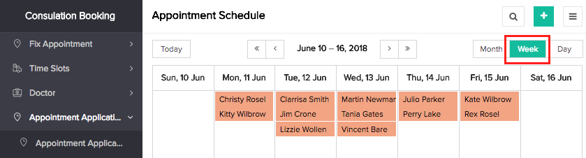 Let's assume that you have an application that allows out-patients to book appointments for consultation at your clinic. You can view these appointments in a calendar report. If you enable users to book appointments for a month, you can switch the views between day, week, and month to check the appointments for that particular day, the week, or the entire month, respectively.