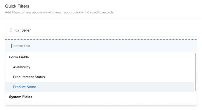 Quick filters can be included in the report builder, which in turn will be reflected in the report. The users can apply the required filter to the complete data in the report, then narrow down to the records that they wish to view.