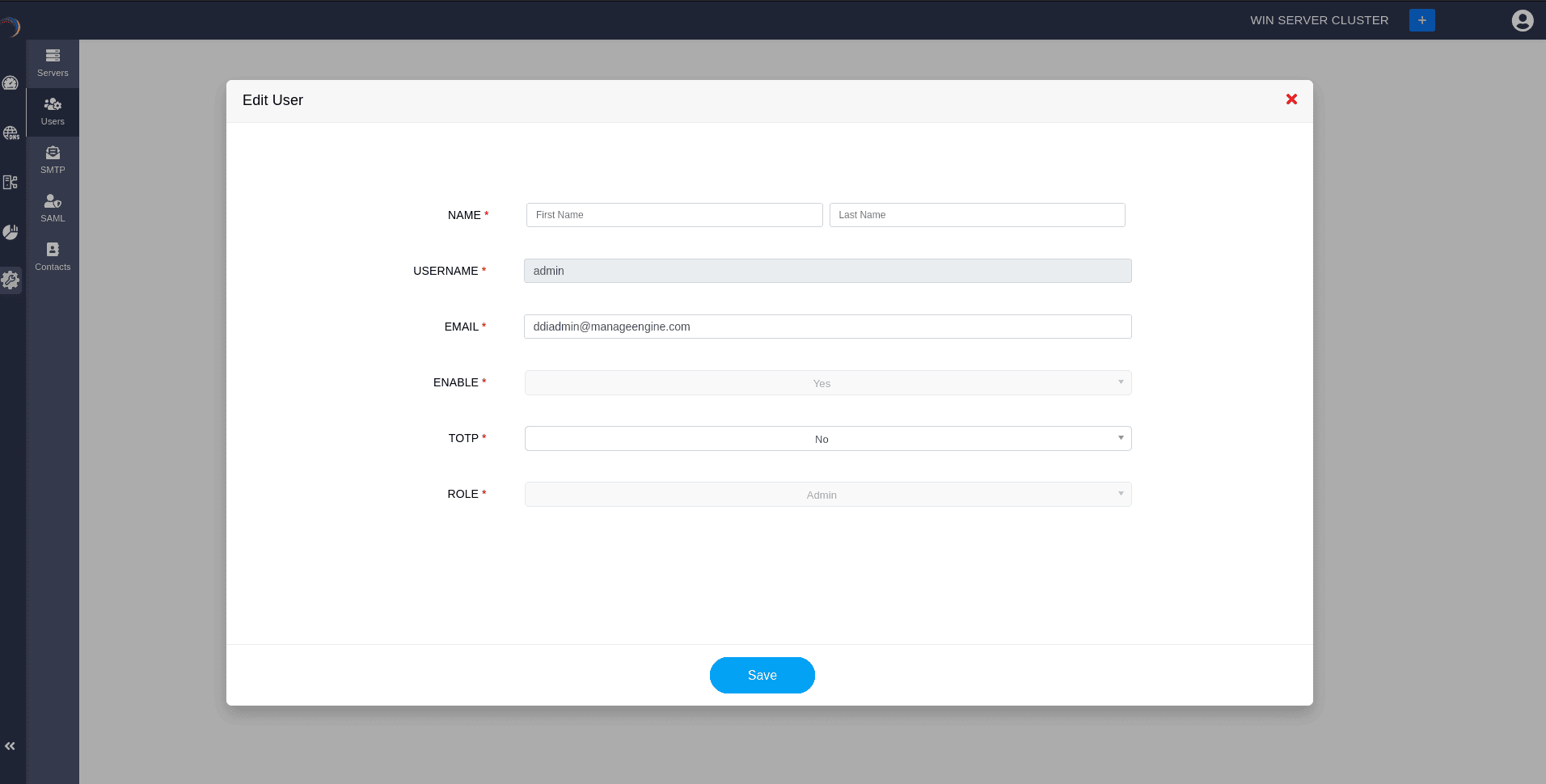 - Enter the essential details of the user, including Name, Username, email, and password. You can enable or disable the login for this particular user. Set Yes to enable the login. Enable the TOTP login for the user to add an extra layer of security.