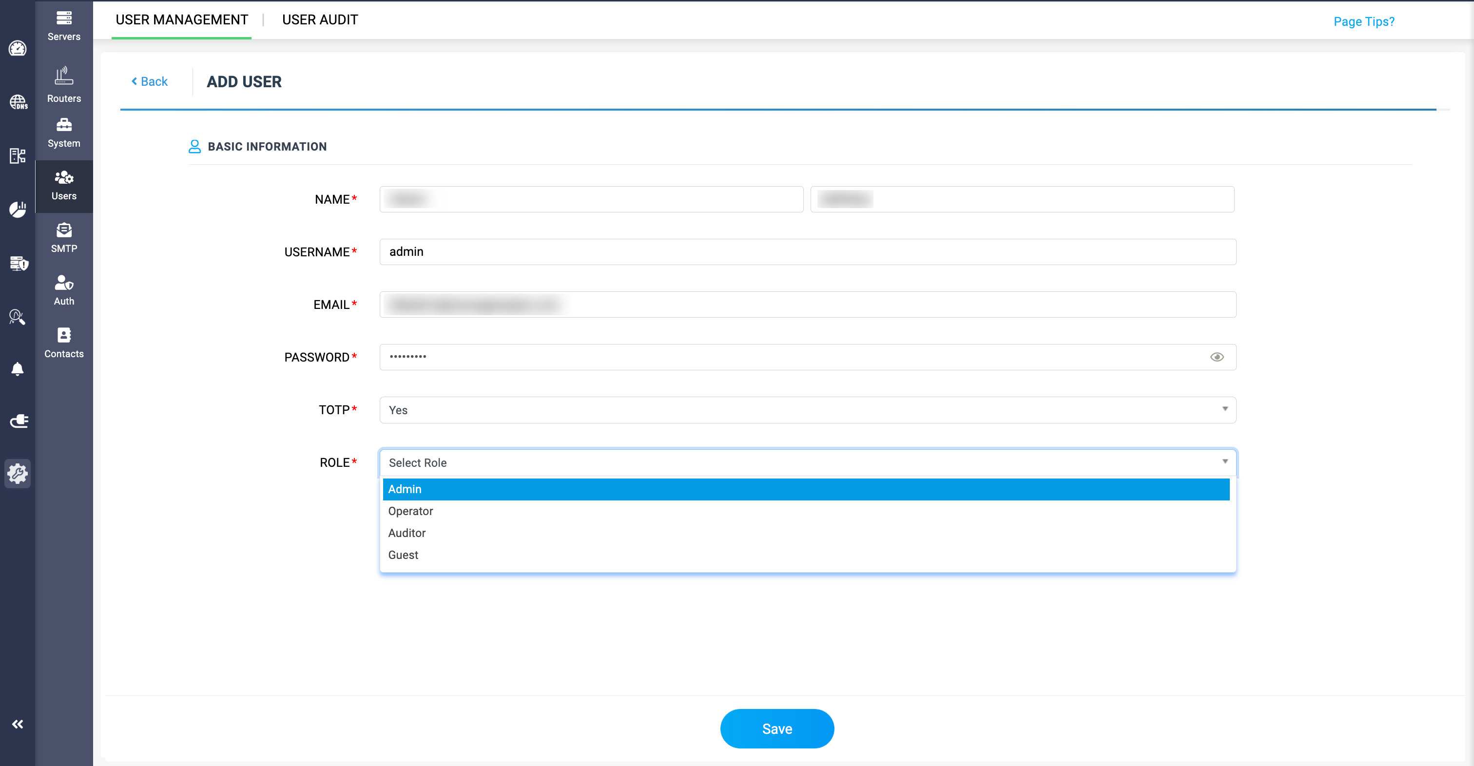 - ROLE: Select the role you want to assign to the individual. There are 4 different role options, and only Operator and Guest roles can be granted access to subnets, supernets, or hosts.