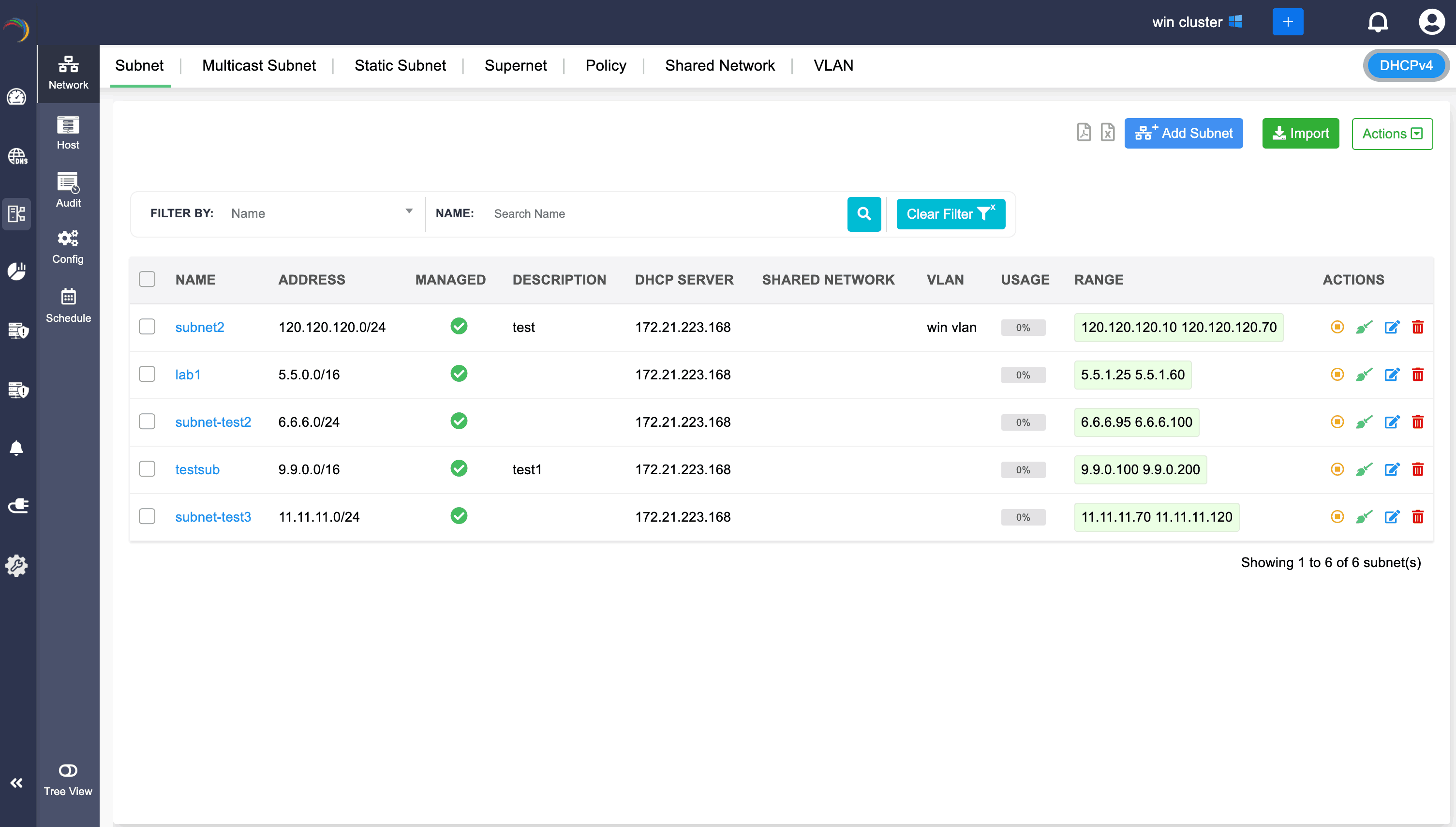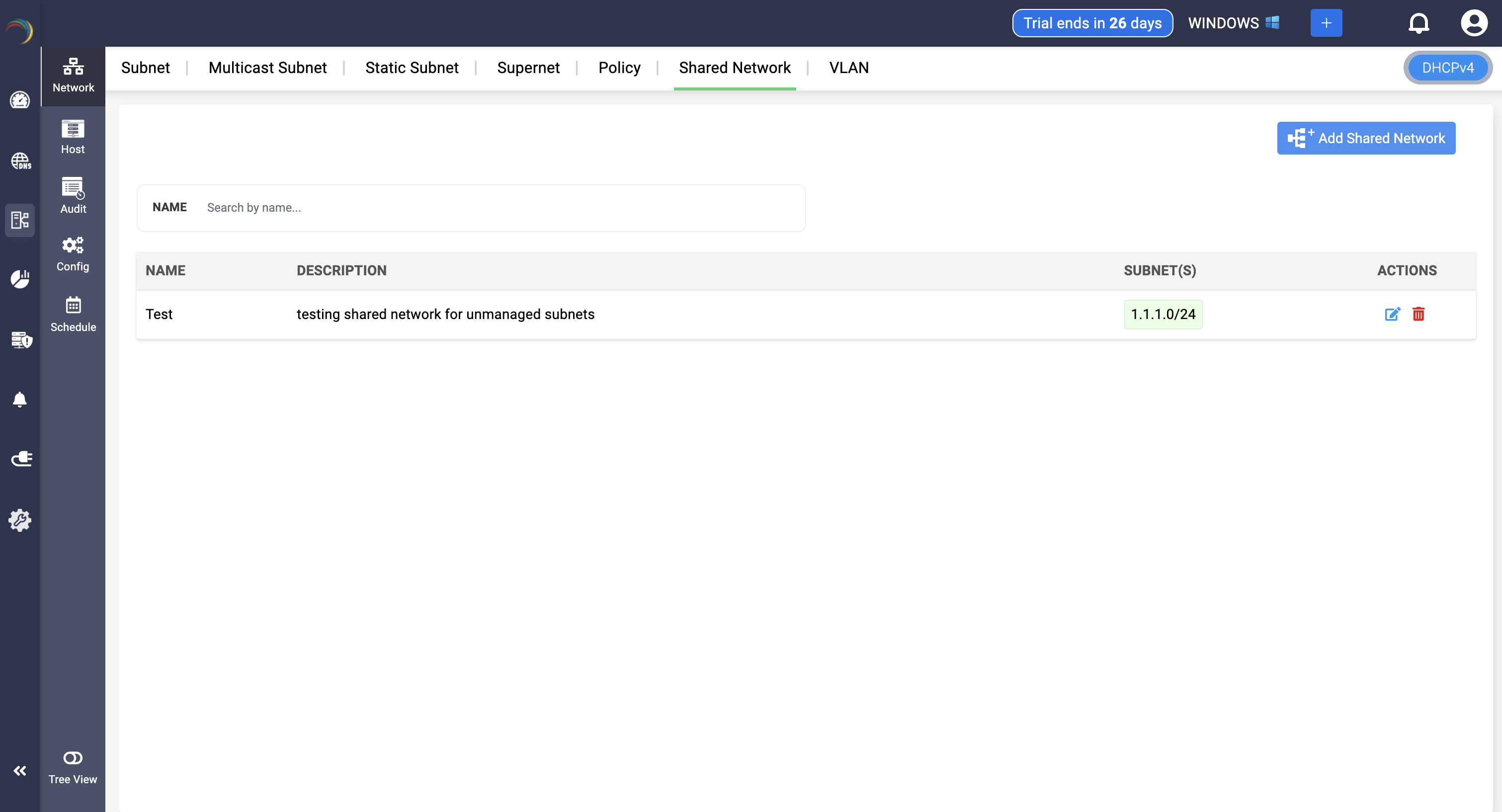 When an unmanaged DHCP subnets are associated with a specific shared network, the subnets will be displayed within the shared network page for reference.
