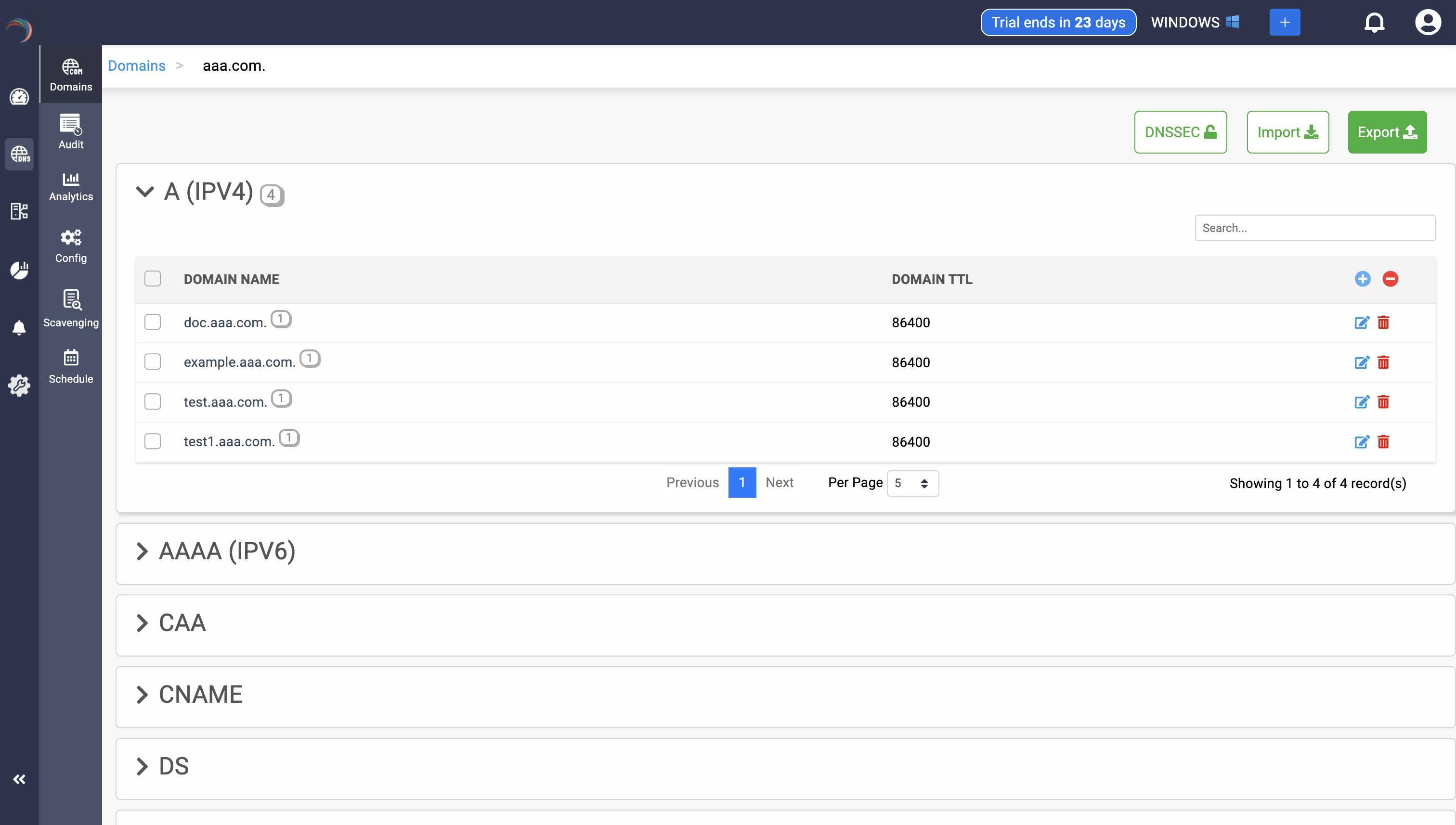 Step 1: Click on the AAAA record of the DNS zone for a domain.