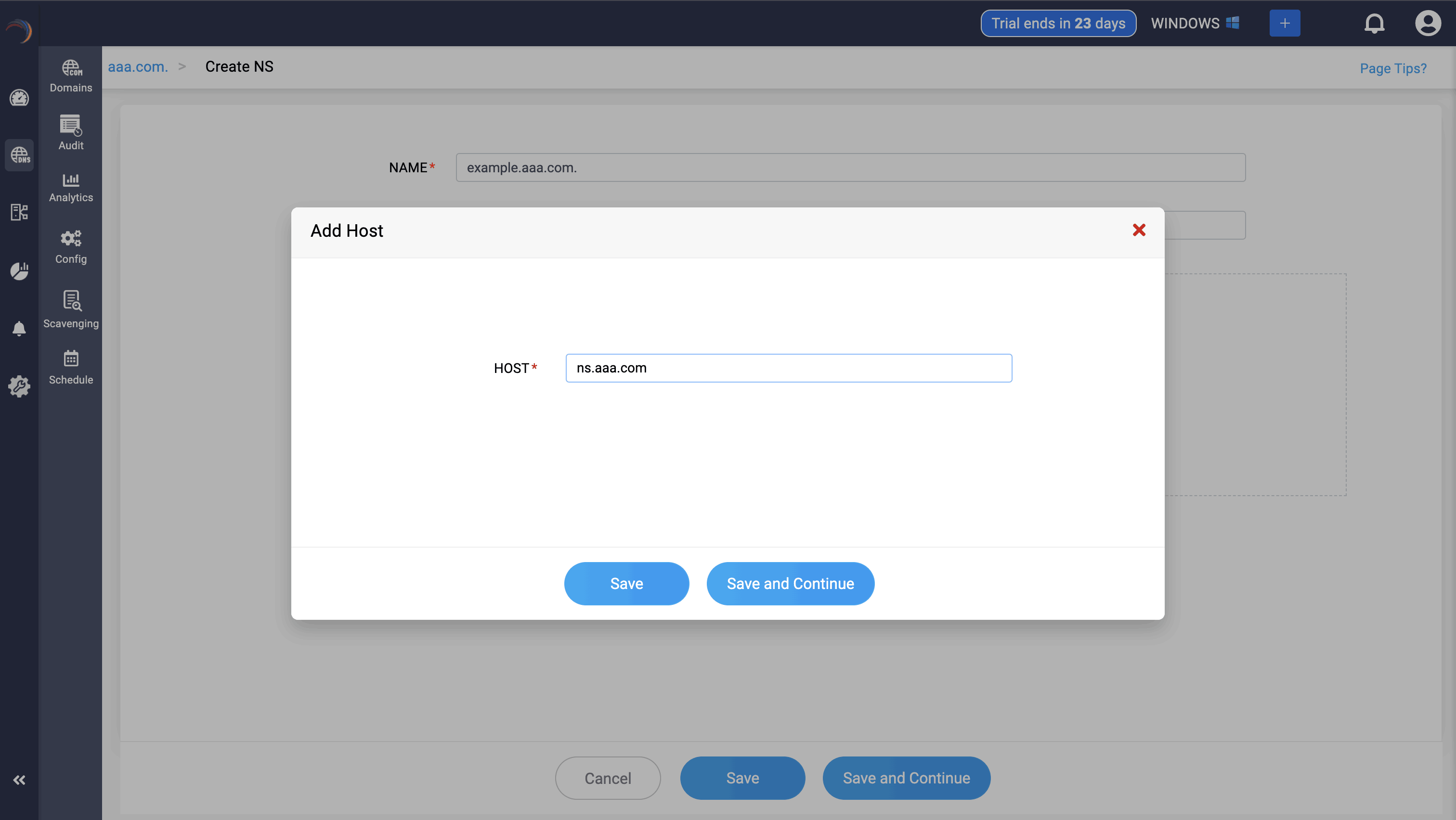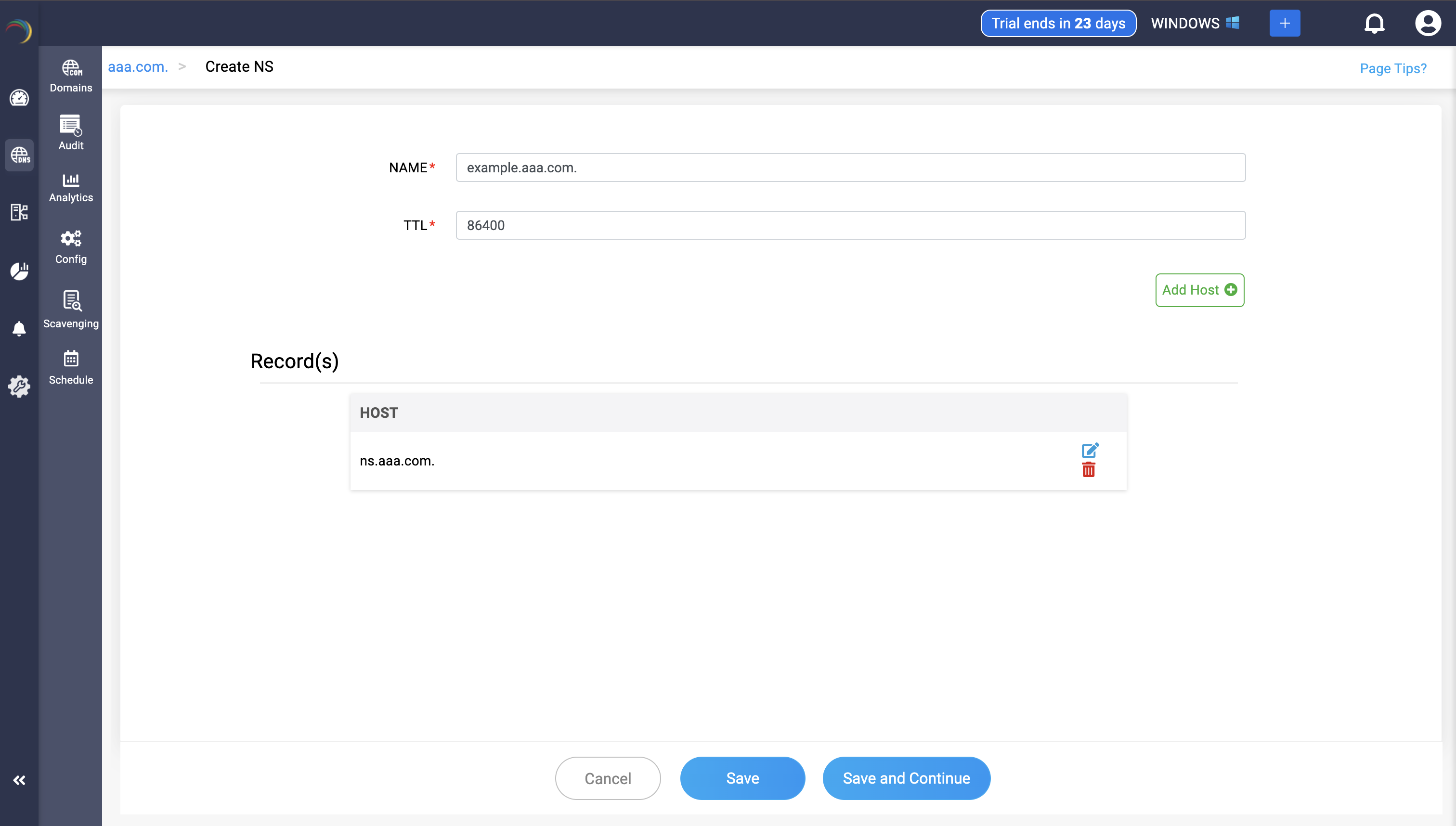 Step 3: Provide the details of the new NS record, such as name, TTL, date and time.