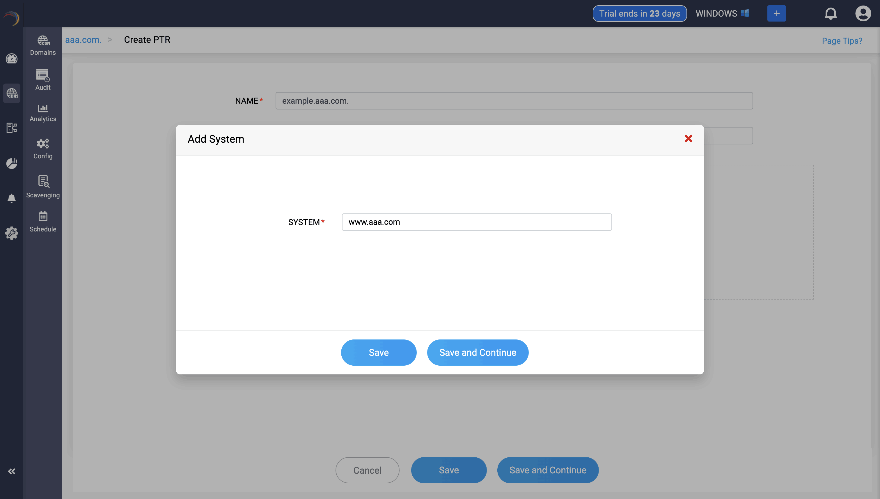 Step 3: Provide the details of the new PTR record, such as name, TTL, date and time.