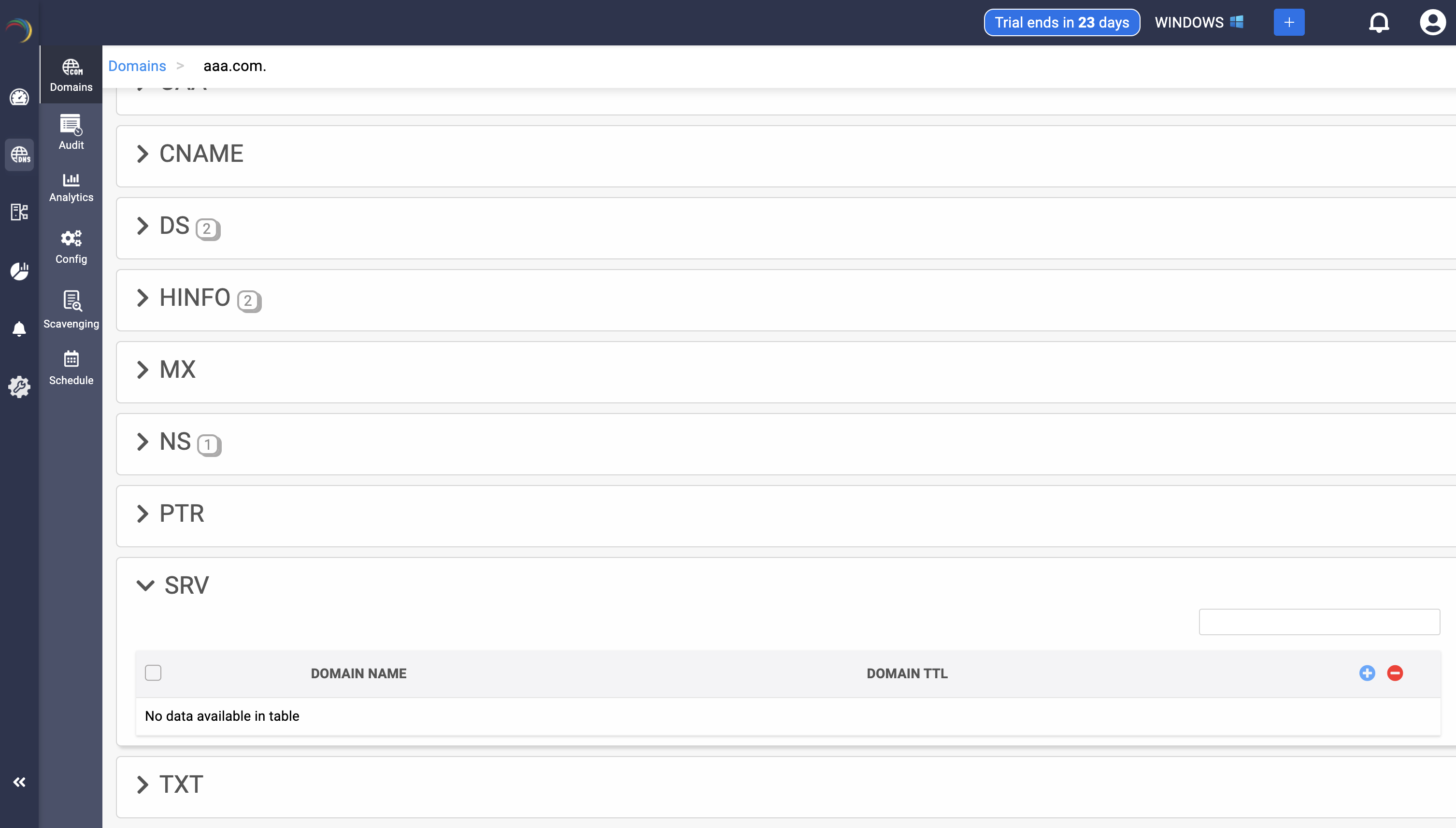 Step 1: Click on the SRV record of the DNS zone for a domain.