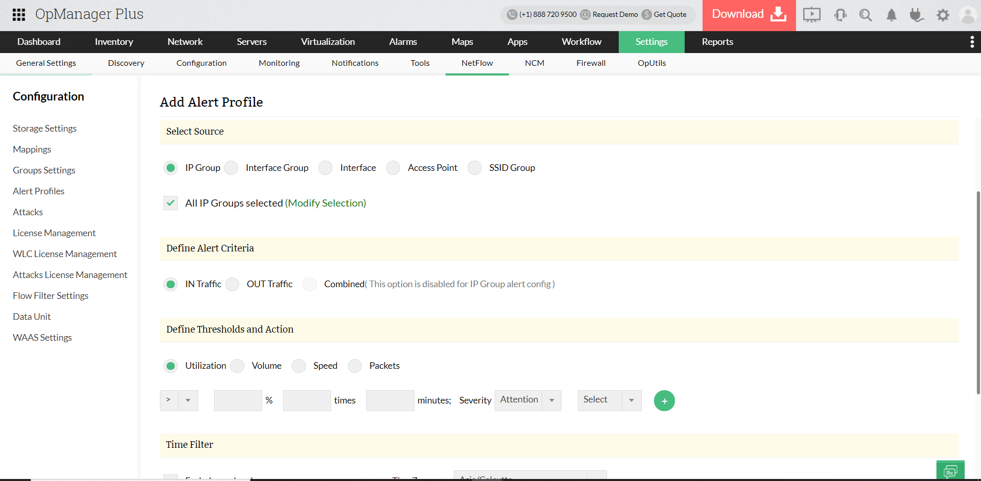 - Monitor and analyze behavioral changes to identify potential anomalies proactively. Detected anomalies are generated as alerts, allowing you to predict bandwidth issues that could affect network health.