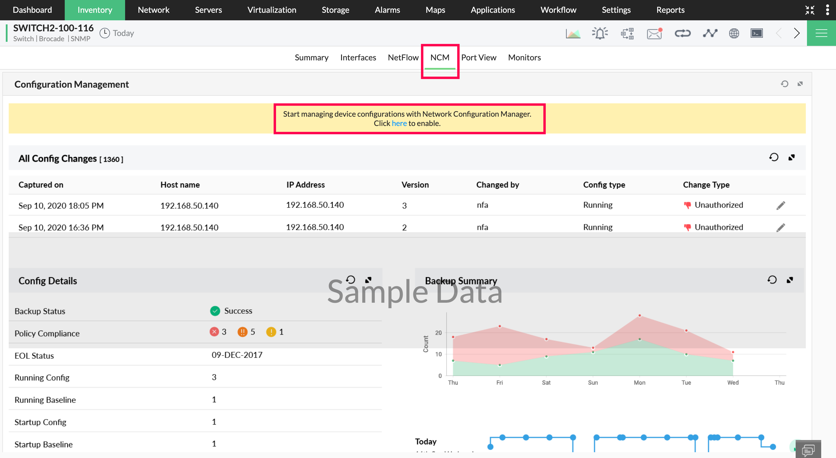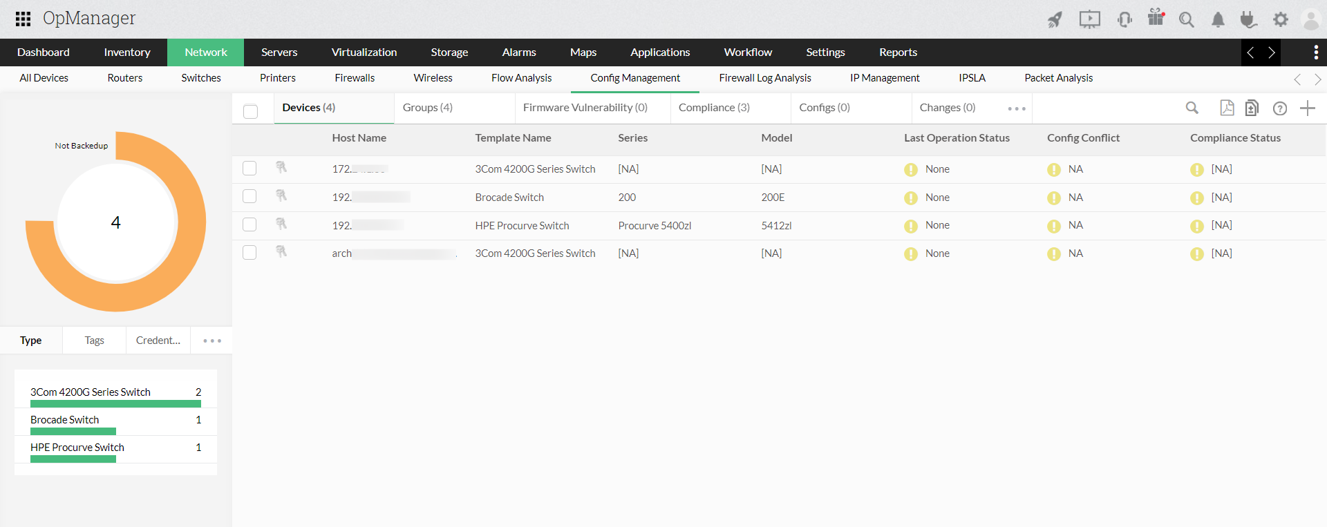 After enabling the add-on, access backups, firmware management, compliance, and other functionalities by going to Network -> Config management.