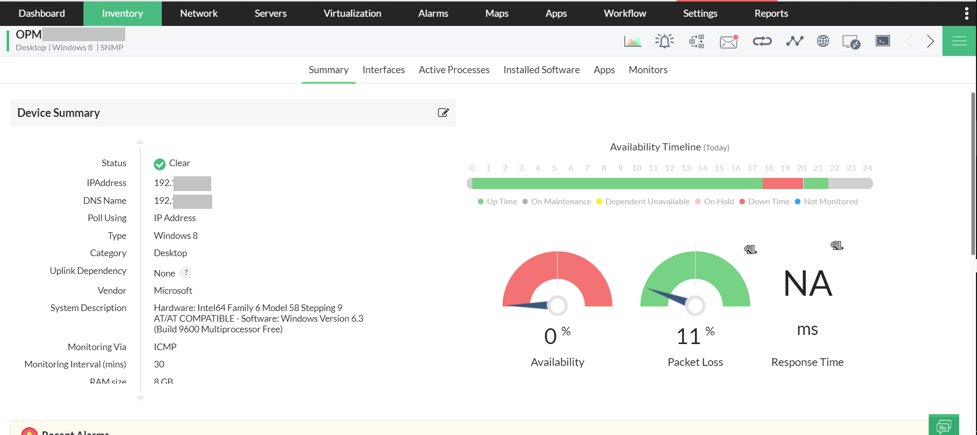 - Monitoring: Loss of speed and data integrity due to poor transmissions is called degradation. Enterprise networks face more of these issues due to the additional distance, endpoints, and equipment at midpoints. OpManager monitors the availability, health, and performance of networking devices such as switches, routers, physical and virtual servers, interfaces, Cisco UCS, Nutanix infrastructure, storage devices, and more in real time for more than 5,000 performance metrics. You can identify performance degradation by monitoring device performance over time. This helps you make planned IT decisions such as replacing hardware, purchasing new devices, etc.