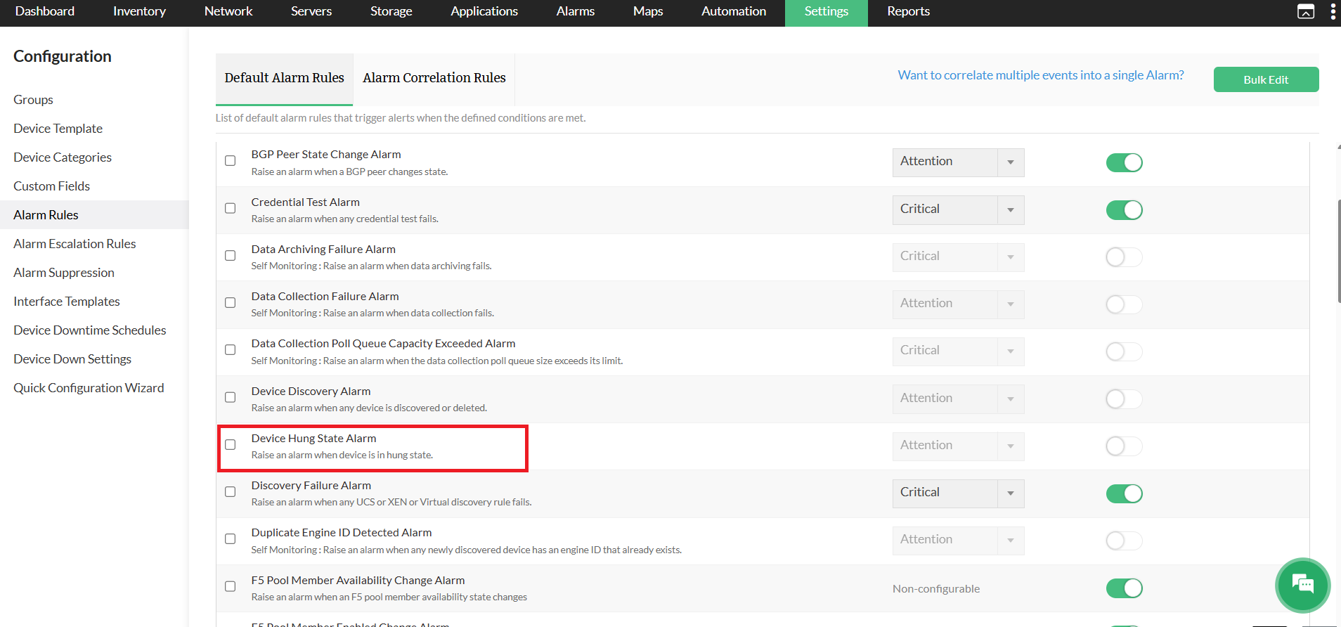 Once enabled, OpManager automatically generates alerts when devices in a hung state are identified.