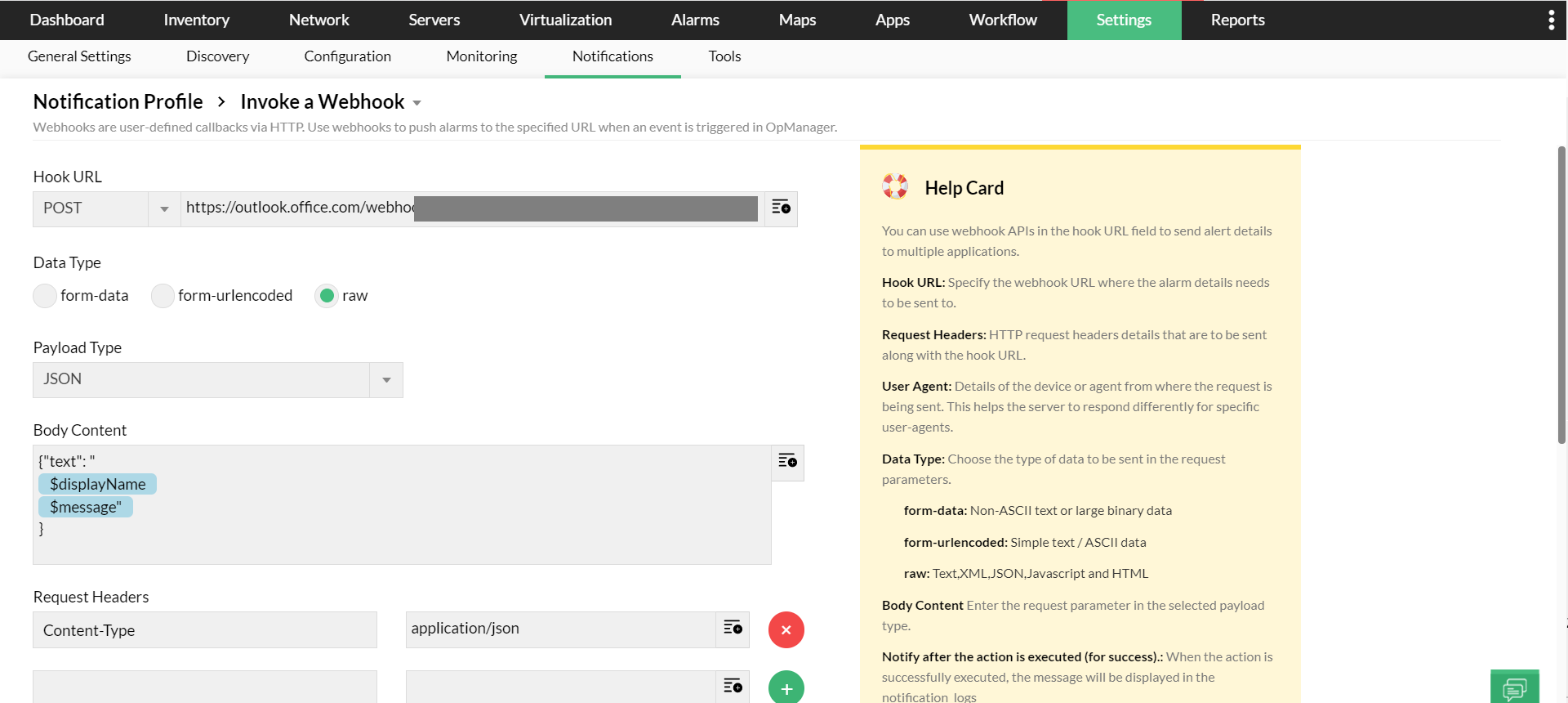 Steps to integrate OpManager with Microsoft Teams using Webhooks: