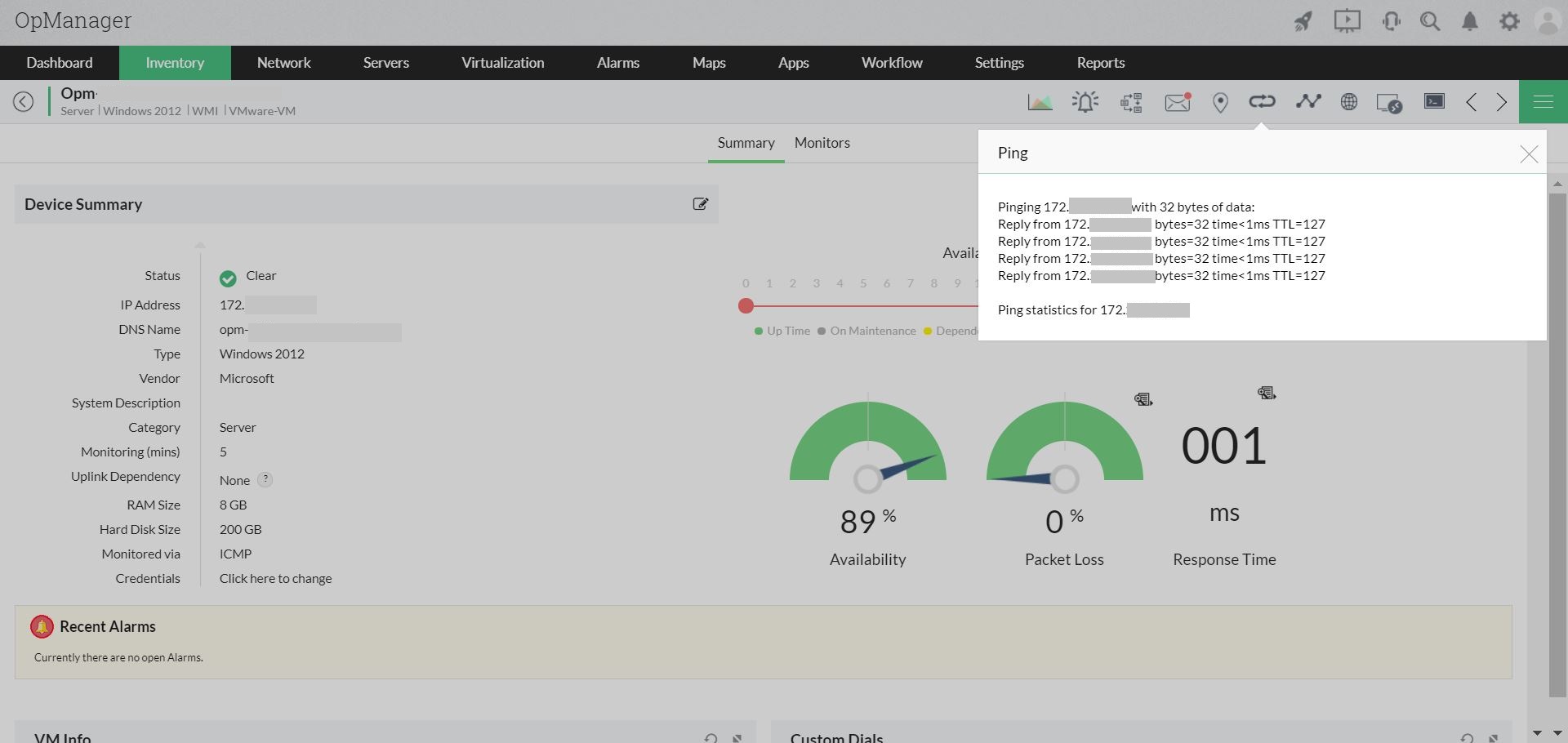 - Remote into the device from OpManager for troubleshooting using tools like RDP, Telnet or SSH, Web link access