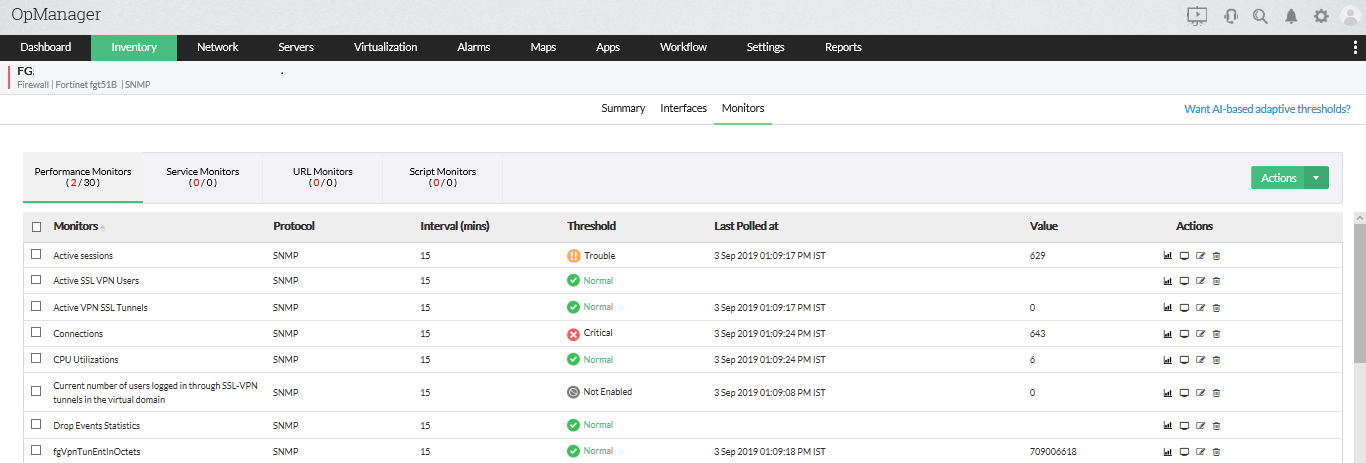 OpManager is a network activity monitoring tool that enables IT admins to track even the smallest activity on their networks in real-time. This way, IT admins can minimize downtime and the mean time to resolve (MTTR).
