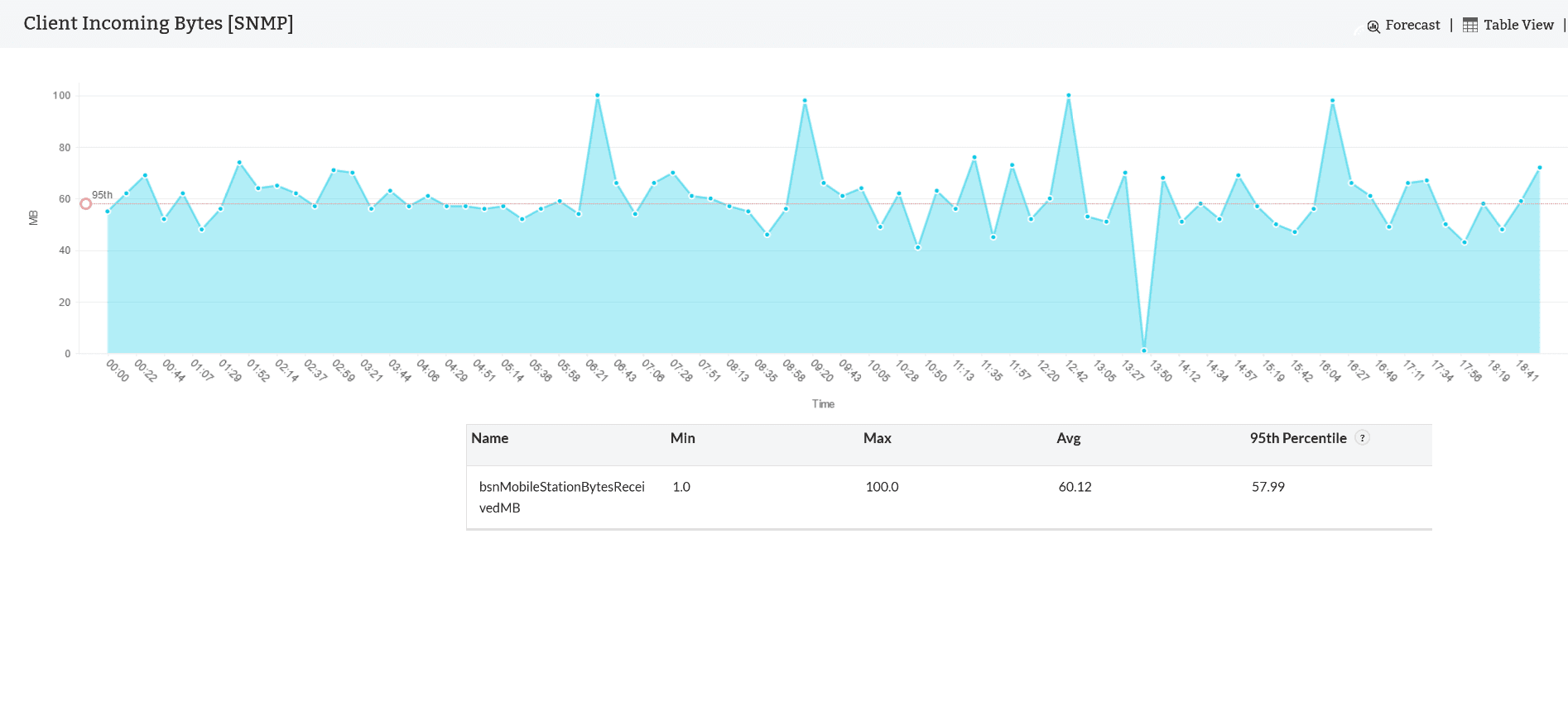 Get extensive visibility into wireless traffic utilization. For instance, you can obtain the total received or transmitted byte count for clients, APs, or WLANs as a whole. You can also monitor client transmit rates to gauge network performance.
