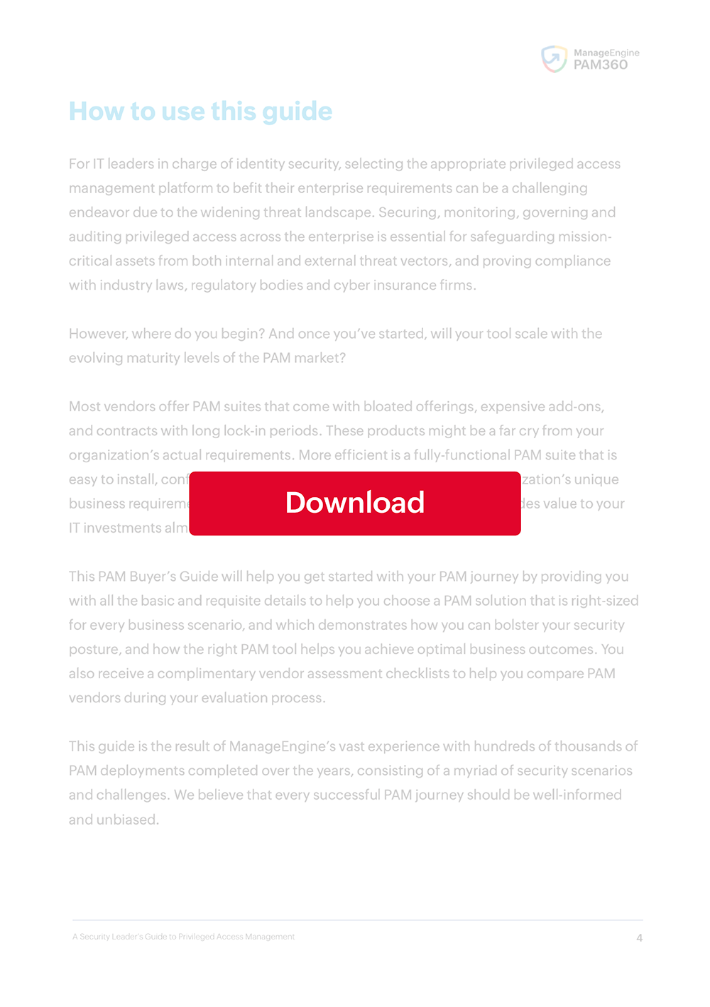 The PAM buyer’s guide for CxOs 2026 distills 26 years of experience and hundreds of enterprise deployments into a single, easy-to-use resource to help you: