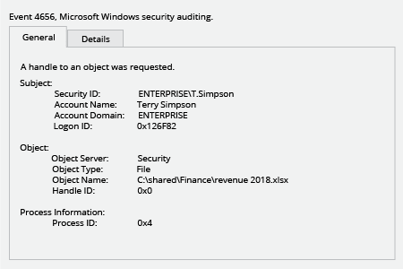 Search the Security Windows Logs for the event ID 4656 with the Audit Failed keyword to find out who tried changing a file or folder.