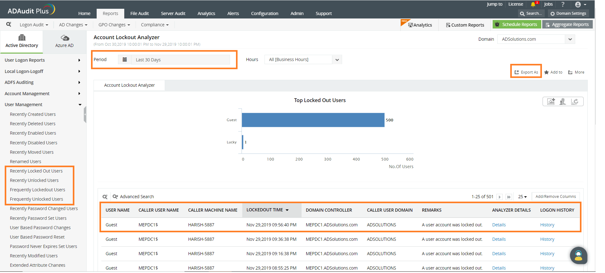 How to find out what is locking out an Active Directory account with ADAudit Plus