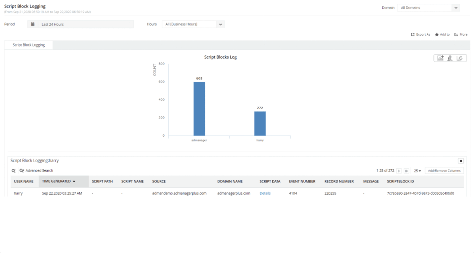 Tip: Considering the huge volume of PowerShell events that get generated, keeping track of PowerShell activity using native tools can be a labor-intensive process. A third-party solution like ADAudit Plus can help you overcome this problem.