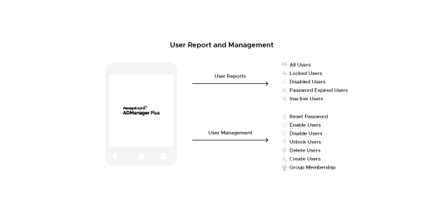 ADManager Plus mobile apps enable you to perform the following AD management operations from your mobile devices:
