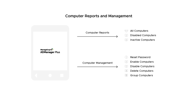 To generate this report, login to ADManager Plus mobile app, and tap All Computers listed under Computer Reports.