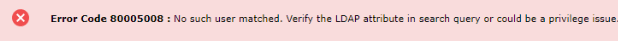 Incorrect LDAP attribute or a non-unique attribute in the search query. An attribute is considered non-unique when a search query returns more than one