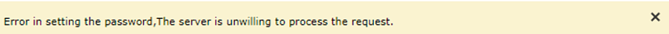 Error : Error in setting the password, The server is unwilling to process the request.