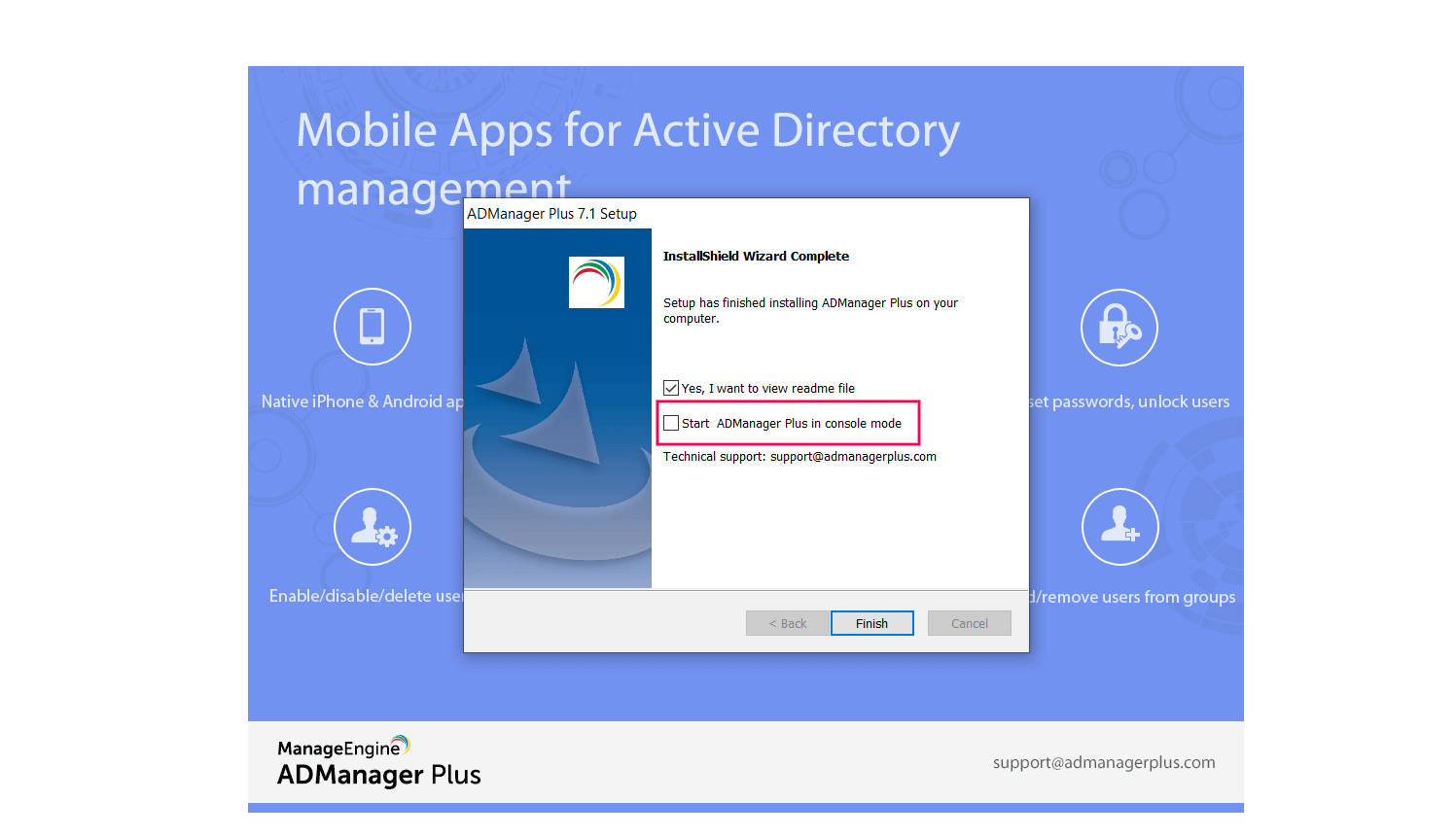 Note: If you have installed ADManager Plus as a Microsoft Windows service, stop the service by navigating to Start > Run > services.msc > ManageEngine ADManager Plus > Stop.