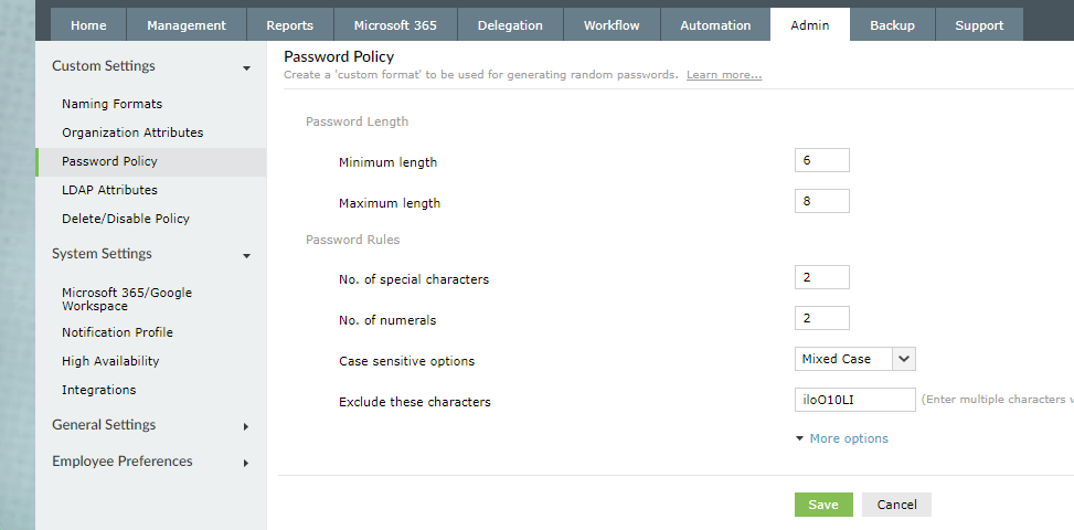 If you are entering the password manually, please make sure that all the requirements have been met when you update the password for new or existing users in AD Manager plus.