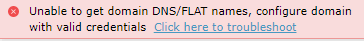 When I add the Domain Controller, I get an error as "Unable to get domain DNS / FLAT name". What does it mean?
