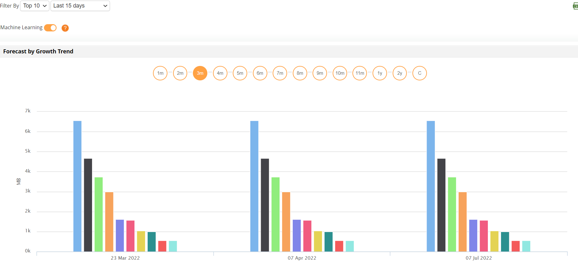 By analyzing historical resource usage data and employing forecasting algorithms, Applications Manager's GCP monitoring tool can predict future resource requirements. This aids in effective capacity planning, ensuring that the GCP infrastructure is adequately provisioned to handle anticipated workloads without compromising performance. Get trend analysis, attribute-based and inventory reports on a periodic basis in the form of statistical and graphical representations. Obtain Applications Manager's forecast reports generated with the help of machine learning techniques to make educated judgments on future growth and utilization. Substantially lower GCP costs before they accumulate by analyzing reports on storage utilization, node count, pod utilization, and other key Google Cloud monitoring metrics.
