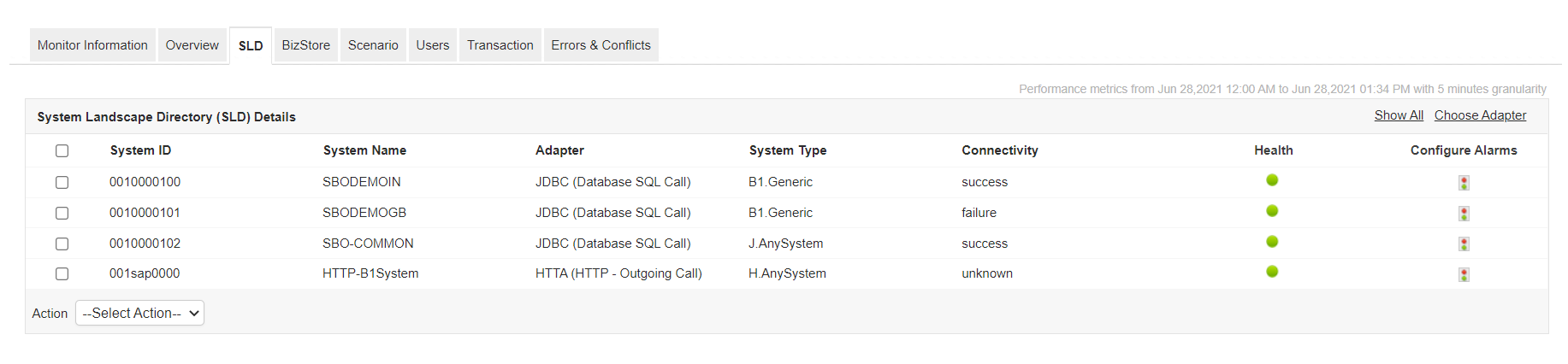The System Landscape Directory (SLD) acts as a central information repository for your system landscape. With Applications Manager's SAP Business One ERP monitoring software, track and manage SLDs in the system. Get details about their name, type, and adapter used. Get notified instantly when there is a connectivity failure before it affects any systems registered with the SLD.