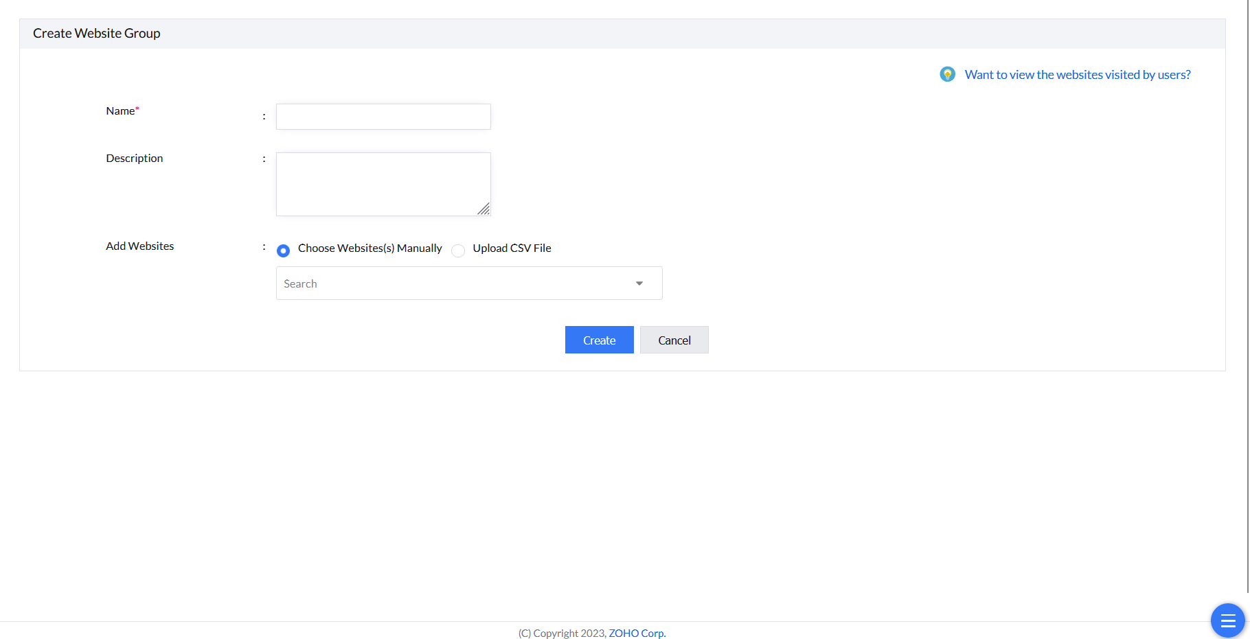 2. Click Create Website Group.