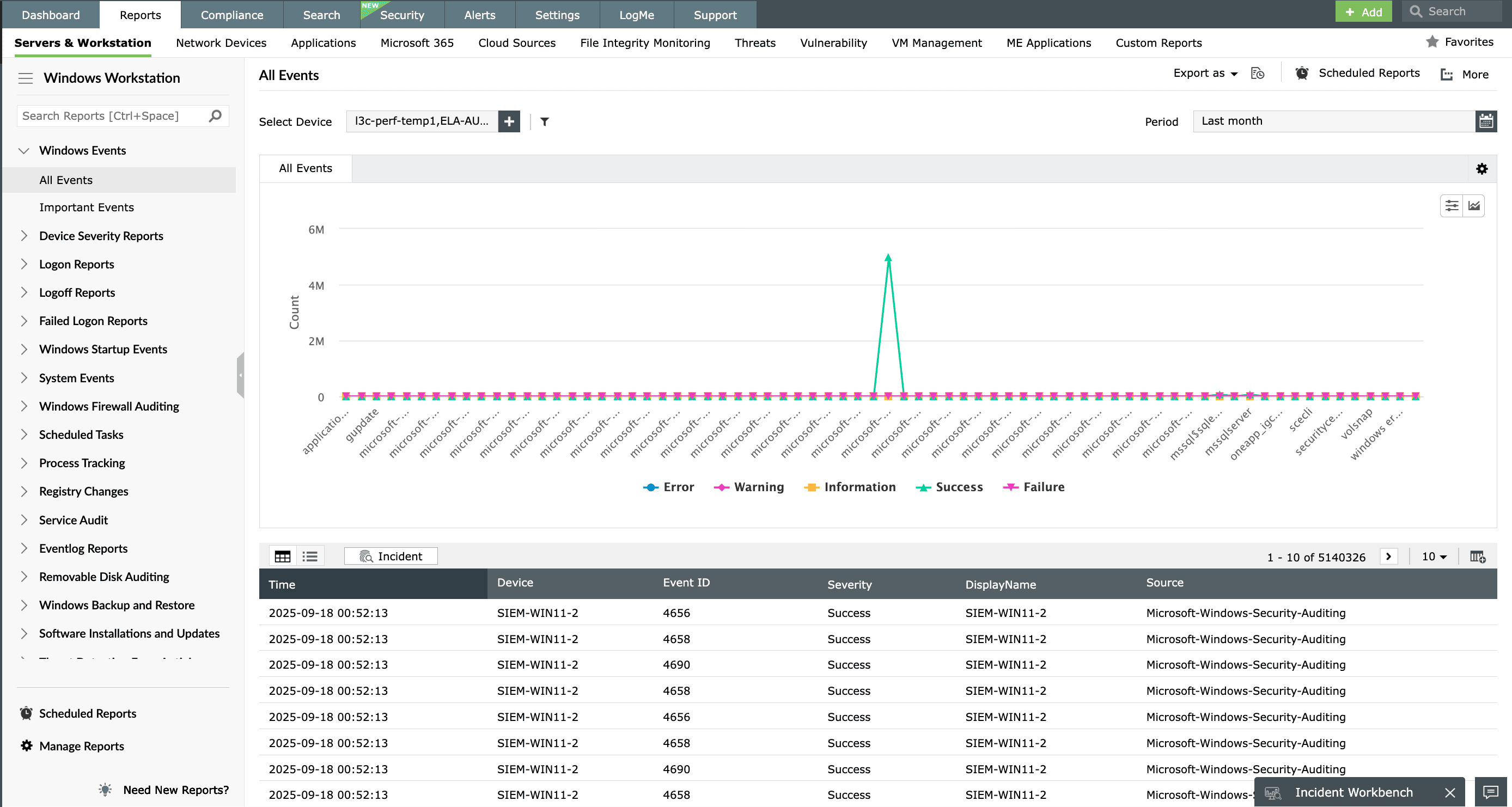 EventLog Analyzer includes over 1,000 predefined reports that are updated instantly upon log collection, helping you analyze your network efficiently in real time.