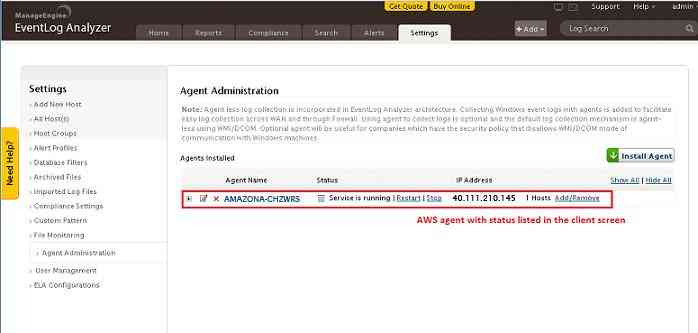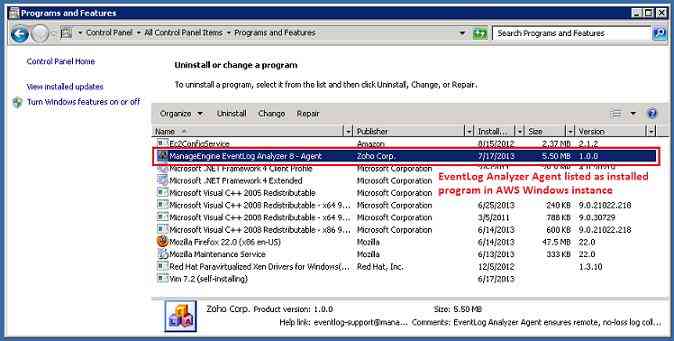 EventLog Analyzer agent is installed as a service in AWS Windows instance.