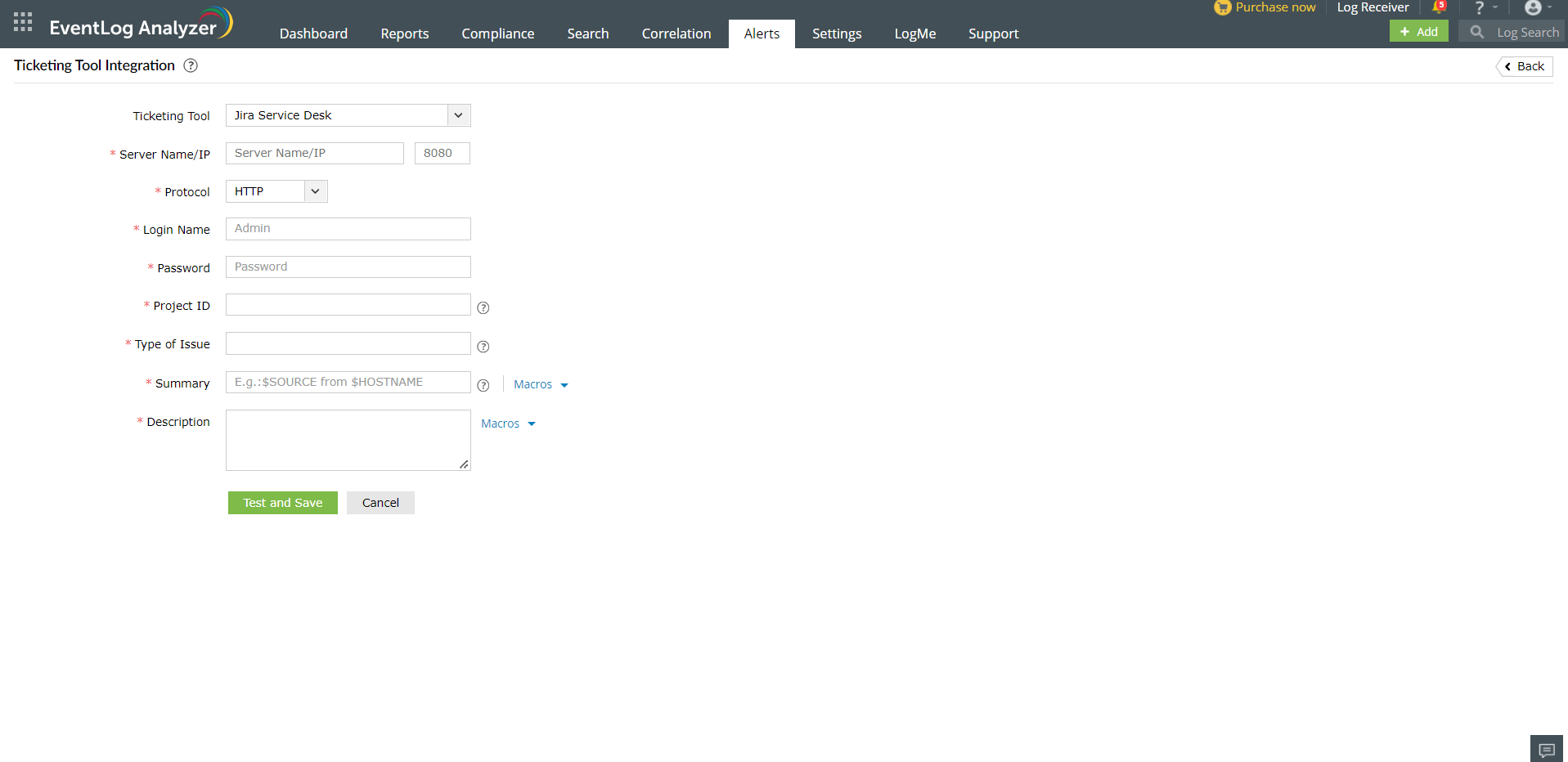 To configure EventLog Analyzer with Jira Service Desk, you would first need to get a few details from your Jira ticketing tool.