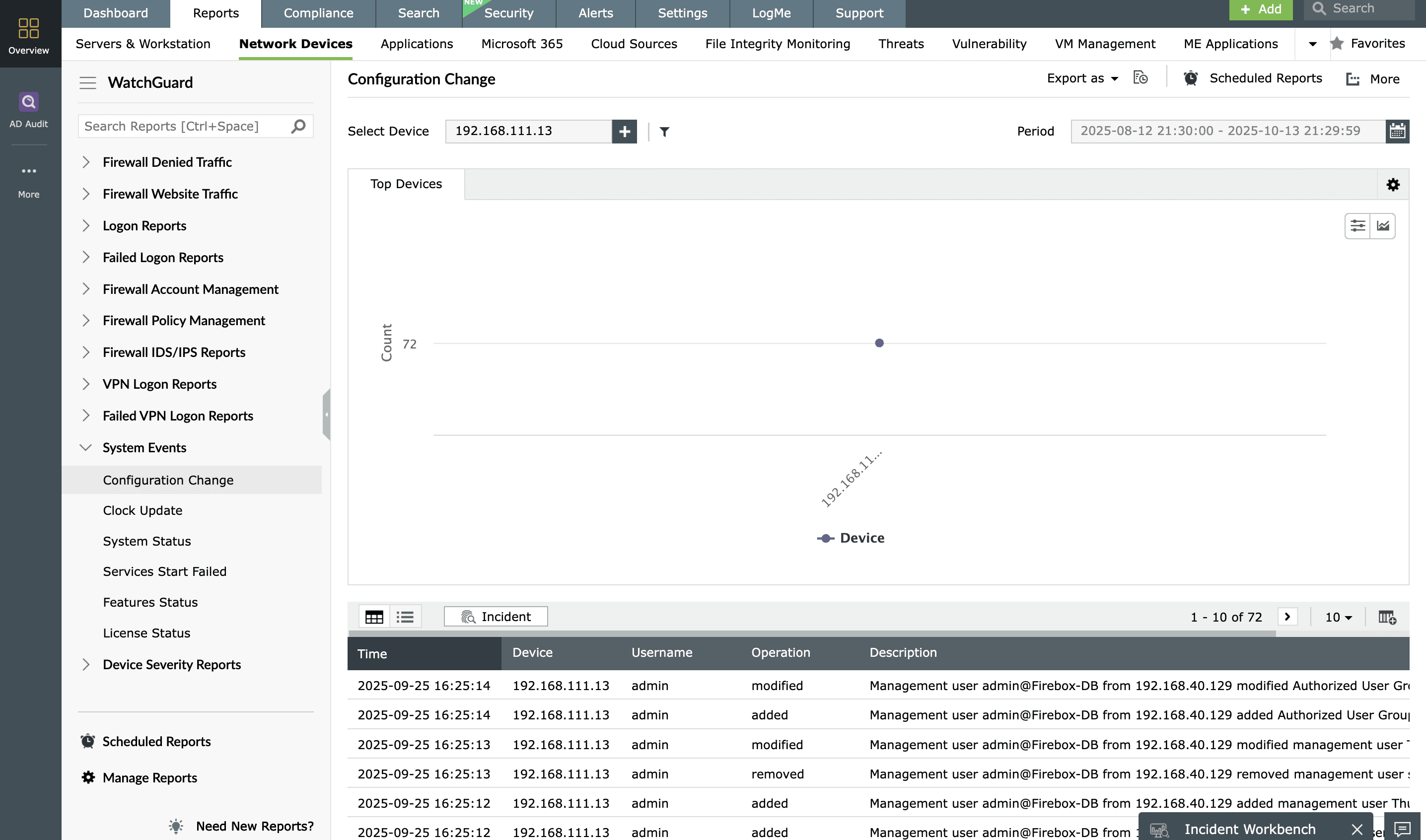 EventLog Analyzer has an extensive set of out-of-the-box reports exclusively for WatchGuard networks that are broadly classified into 12 categories: