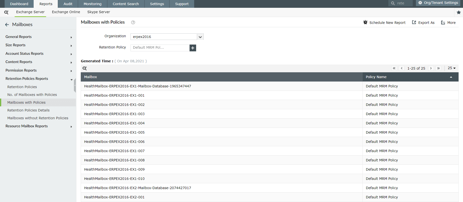 - Exchange Server Compliance Reporting